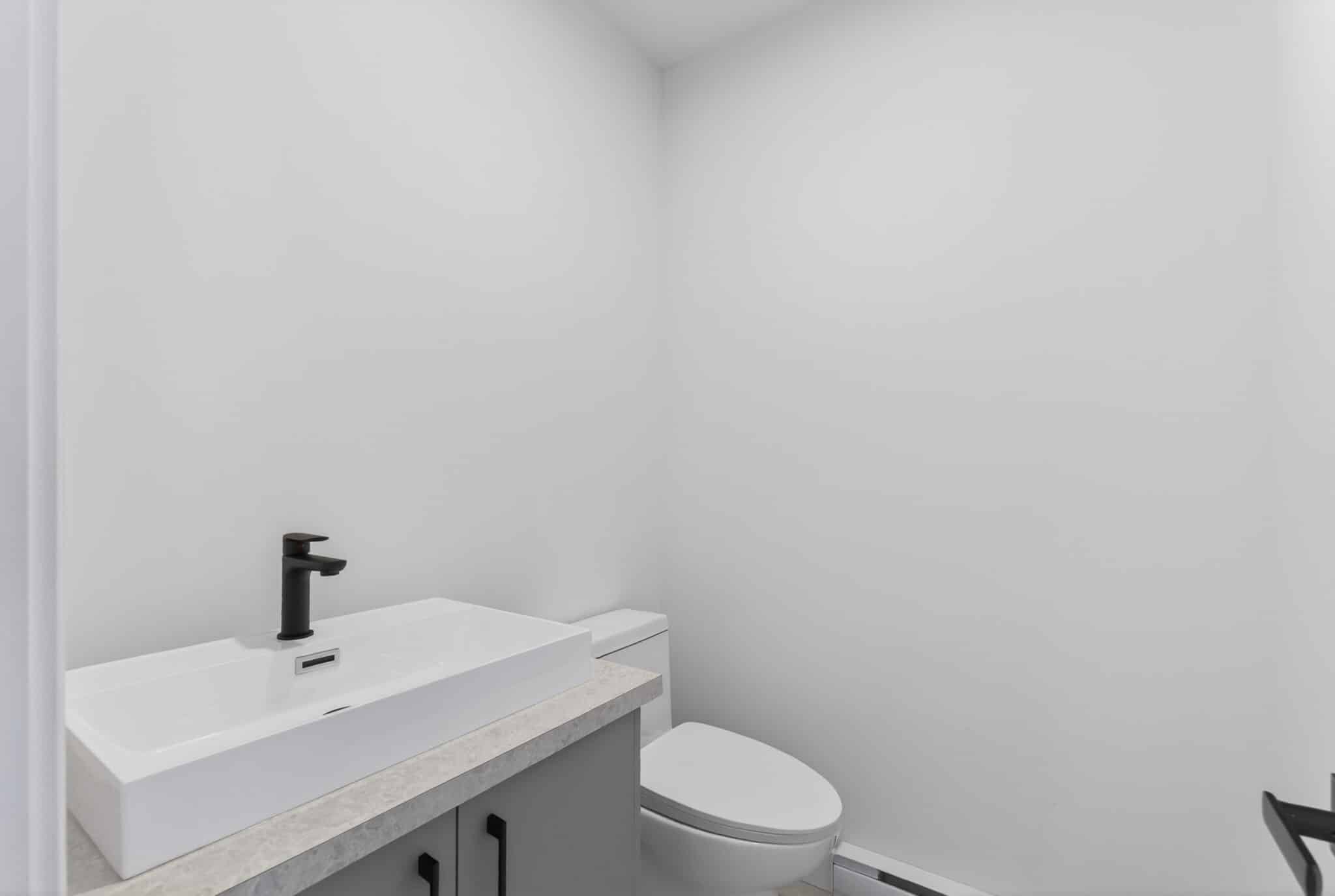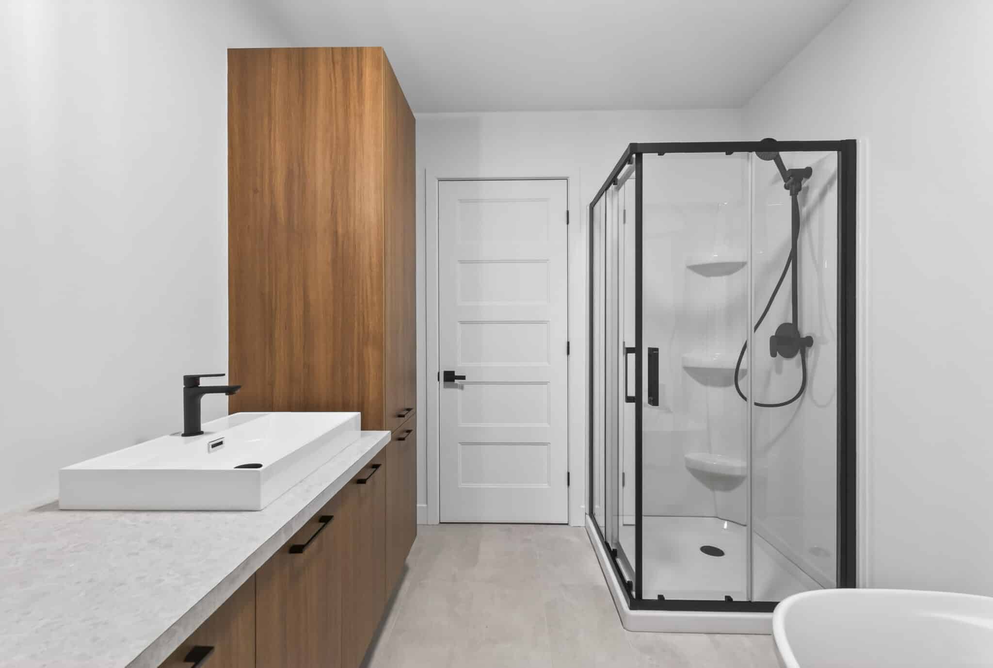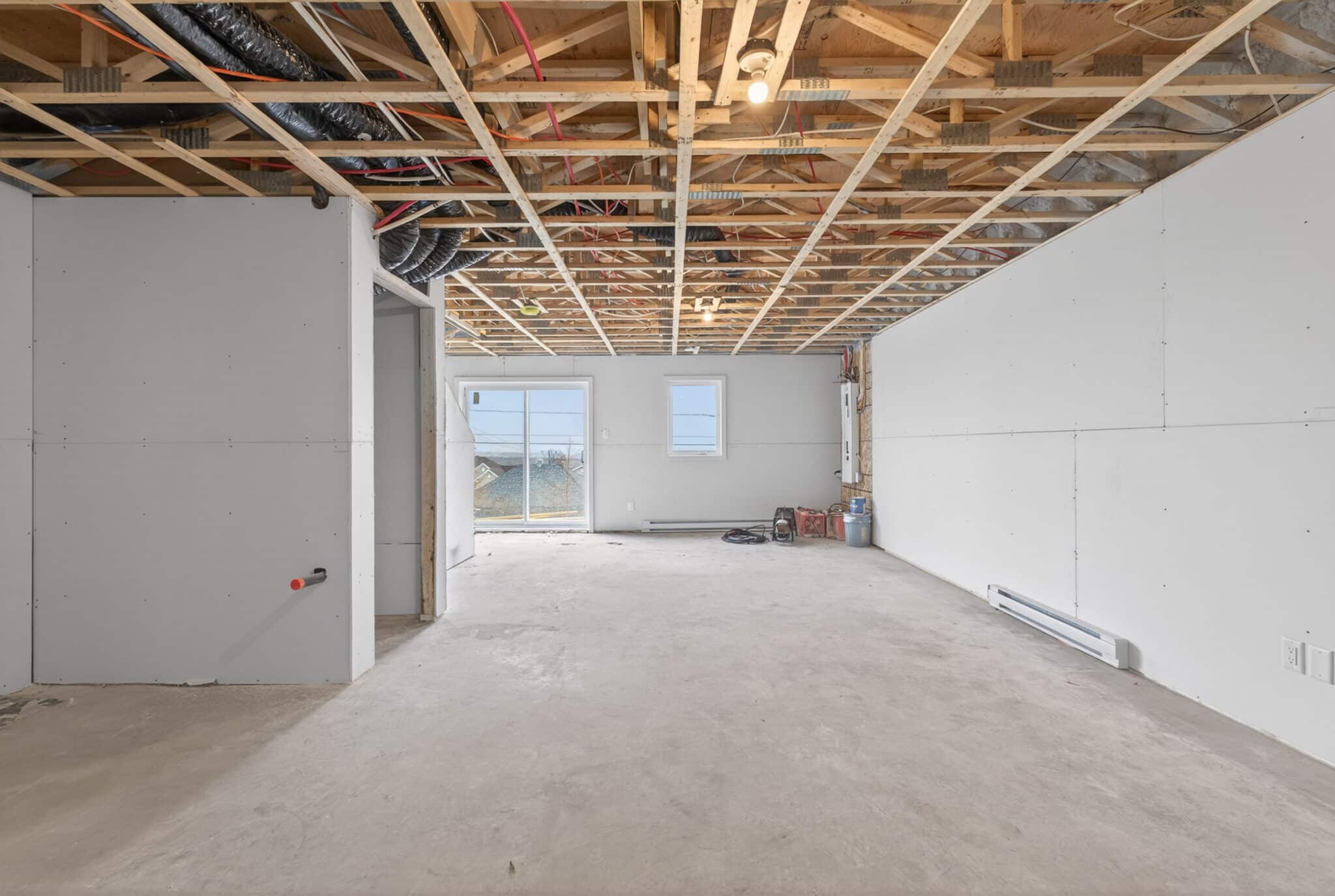 La grande particularité de ce projet : un sous-sol de type rez-de-jardin. Grâce à sa porte patio et sa fenêtre pleine grandeur, cet espace bénéficie d’une luminosité exceptionnelle et offre un accès direct à la cour arrière, créant une impression de niveau supplémentaire habitable.