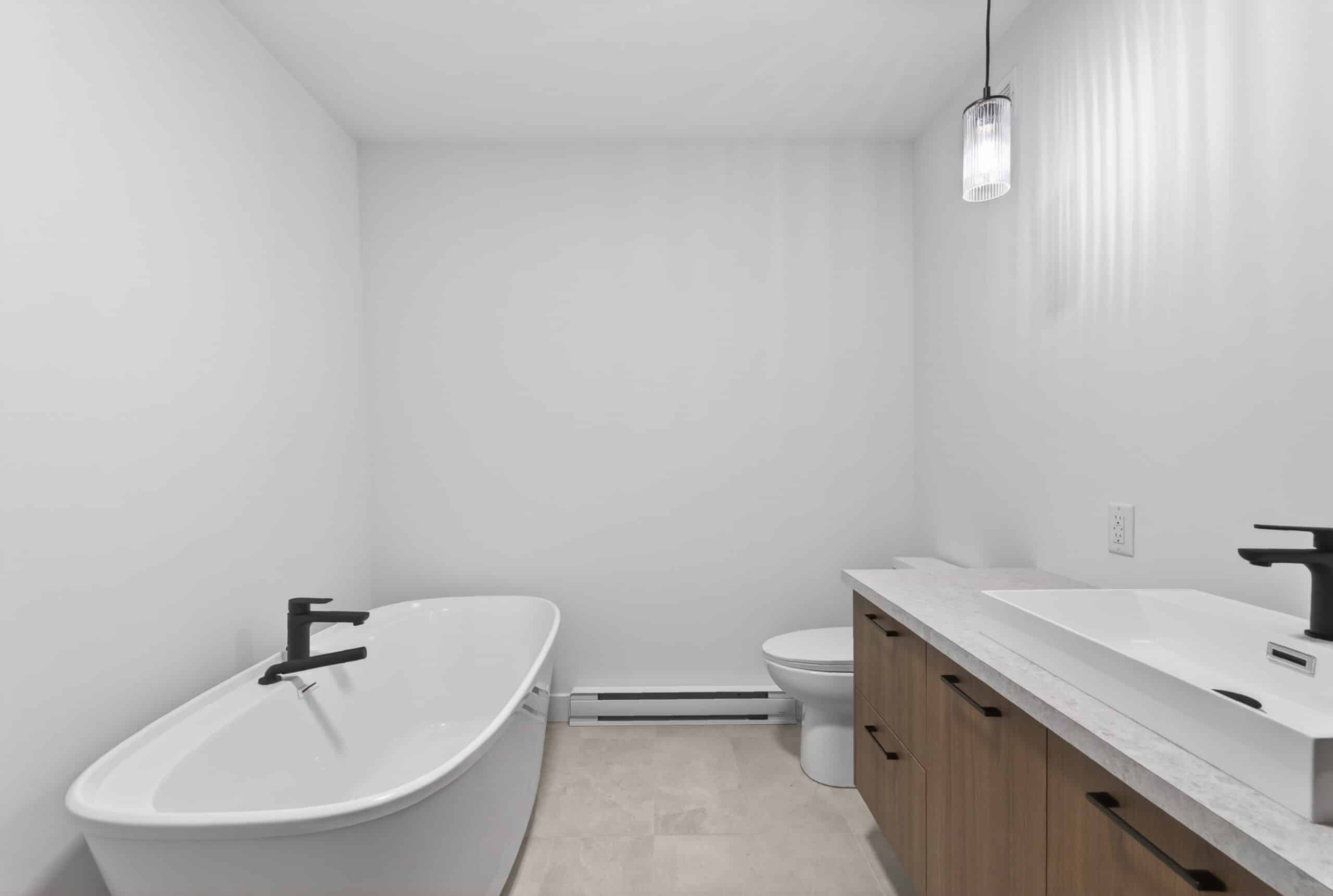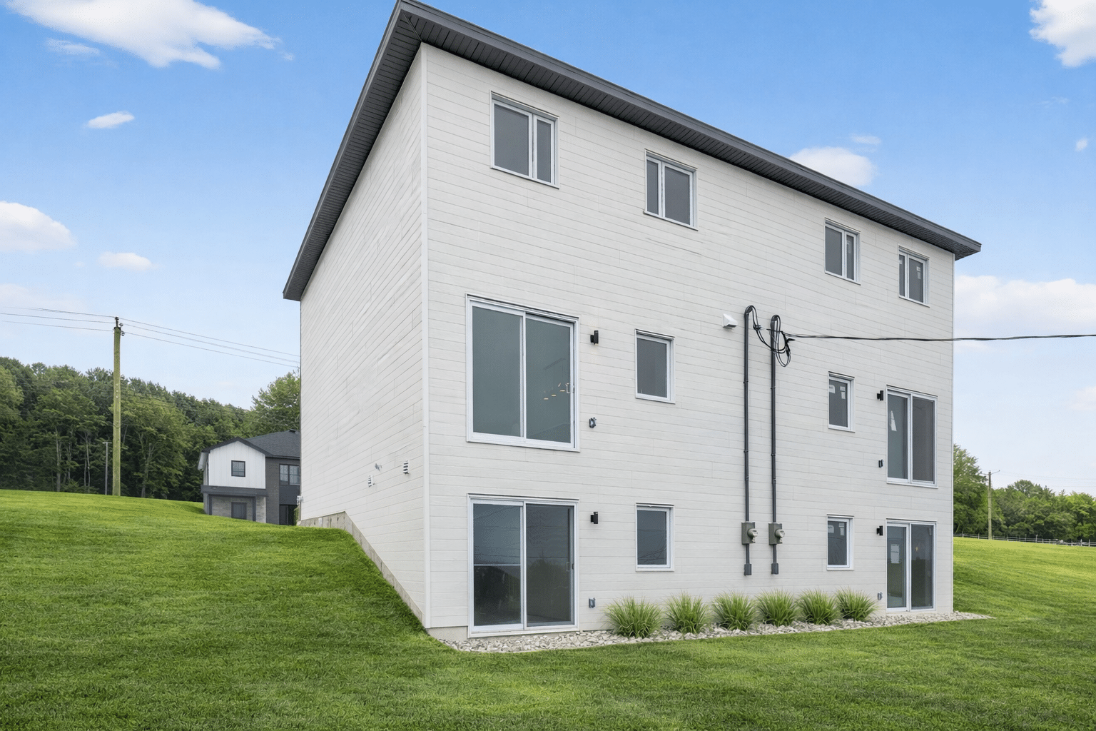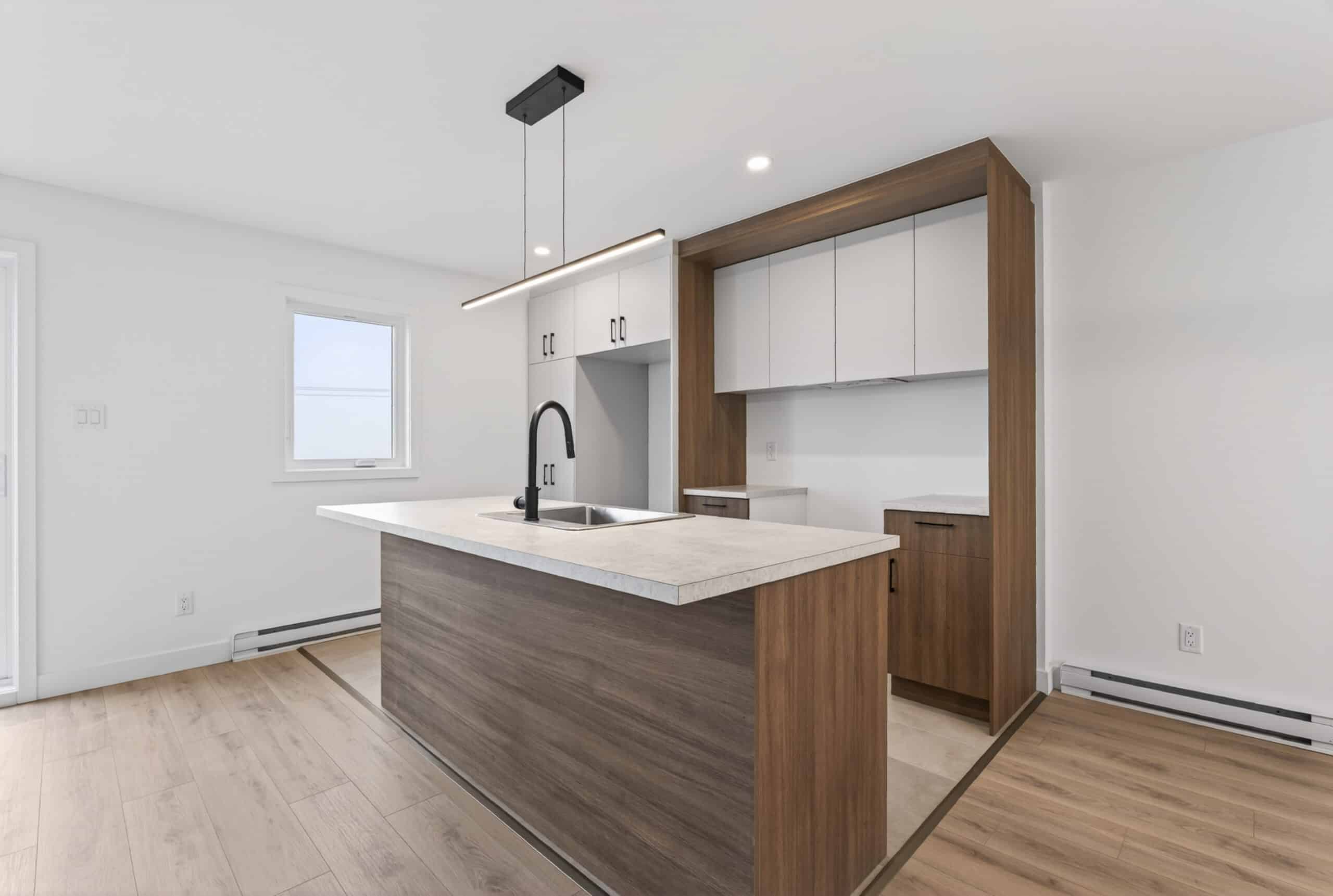 La grande particularité de ce projet : un sous-sol de type rez-de-jardin. Grâce à sa porte patio et sa fenêtre pleine grandeur, cet espace bénéficie d’une luminosité exceptionnelle et offre un accès direct à la cour arrière, créant une impression de niveau supplémentaire habitable.
